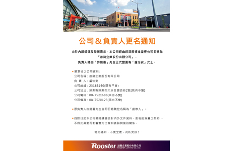 Notice of company & person in charge name change