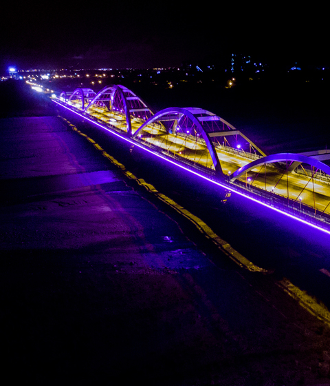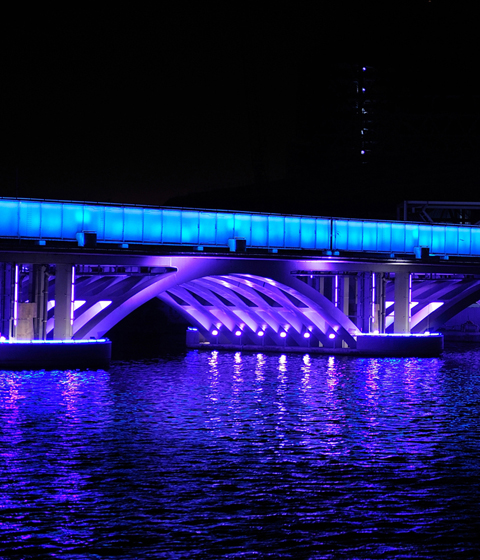 The Rooster Lighting team matched the railings on the deck of the Love River Pedestrian Landscape Bridge with a lighting control system to echo the color changes of the Kaohsiung Pop Music Center. The lights at night make the old iron bridge a highlight across the Love River.