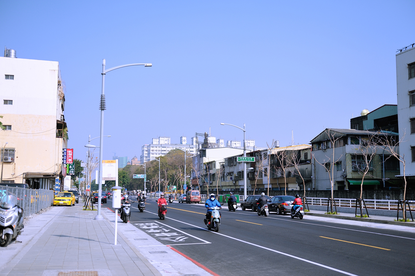 雄鶏企業配合市府團隊以最快的速度復原整體公共建設,憑著絕佳的照明設計和模組化的生產方式,讓這款簡約的燈桿造型融入周遭環境,並提升週邊景觀的整體性。透過模組化以及彈性化的方式將所有的道路資訊整合在同一組路燈上,以降低用路人的視覺負擔,並同時簡化未來更換道路標誌施工的程序。