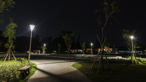 臺南山上花園水道博物館的前身是臺南山上淨水場及原臺南水道,為營造出這座對民生意義重大的歷史古蹟夜間的榮光及帶給遊客身心放鬆的氛圍感受,從入口到博物館區的景觀步道設置了溫色的全周光景觀高燈,除了提供明亮的安全照明外,漫步在上更恍若進如悠悠歷史的時光長廊,引導人們前往百年史蹟建築,悠遊於古意之美。