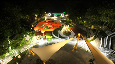 虎頭埤全景式地景遊憩場的燈光設計采用了最先進的科技,結合了自然光和人造光的運用,創造出一個神秘而迷人的感覺。雄鷄照明提供各式景觀燈具為全新地景遊憩場的高低空間創造出黃白光交織的均質照明設計,每盞燈具都經過細心地安裝同時兼顧凸顯景觀造型特色及安全照明需求,透過燈光讓夜裡的遊憩場不只安全,更加璀璨美麗提供遊客一個難忘的體驗!