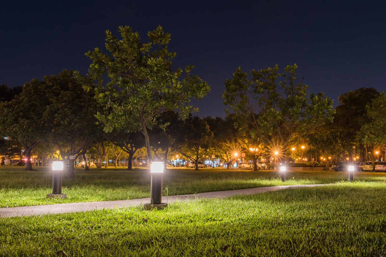 夏夜椰風映動,星空皎潔的校園中,瓊崖海棠正隨驪歌吟月,不知離愁的綠茵鋪毯般招搖著,那嶄新以低眩光LED裝置的夜燈廊道,在光亮中投影出蜿蜒靜謐裡的繁華,它極盡興與滿天斑斕星輝交樂,因為人們知道;有「燈」佇立的地方,總會帶著引領與希望。