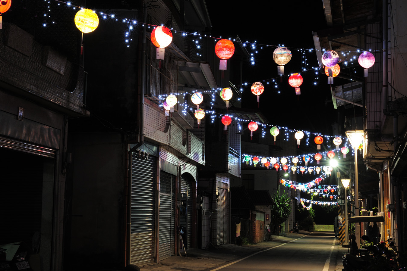 我們以一幅幅的大相框呈現客家伯公、客家藍衫、油桐花雪、紅龜草粿、北客採樟、彩蝶飛舞等極具代表性的客家印象主題元素,重新設計六龜區池田屋周遭光環境。不僅如此,我們更和六龜區公所及在地學校合作同創造彩繪燈籠懸掛於華中街 (展示至4月底),讓遊客在日間一片好山好水的綠色環境下,更能於夜幕低垂時踱步輕搖享受六龜夜間之美。