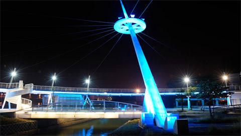 新光碼頭於市府的用心改造之下,夜晚閒逸地漫步於此已成為高雄市居民最幸福的休閒活動。首先由環狀的景觀高台展開光的序曲,隨著高台上美麗慢自變的光色開啟了漫步的悠閒,碼頭內的景觀步道,由雄鷄的LED景觀高燈,提供了安全明亮的漫步空間,親水池設置的LED投射燈讓其在黑夜中更加顯眼,公共藝術也透過外投光以及內透光燈具使其在碼頭內成為民眾佇足觀賞的焦點。經過這樣的照明設計及規劃,讓來碼頭觀光或是散步的民眾,不由自主的放慢了腳步,欣賞著碼頭內美麗的夜色。