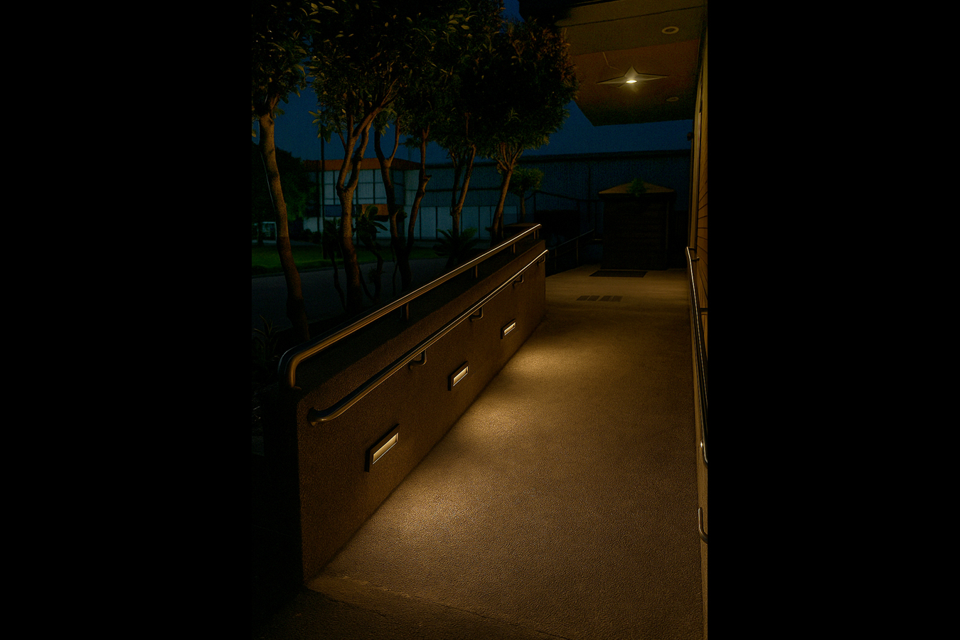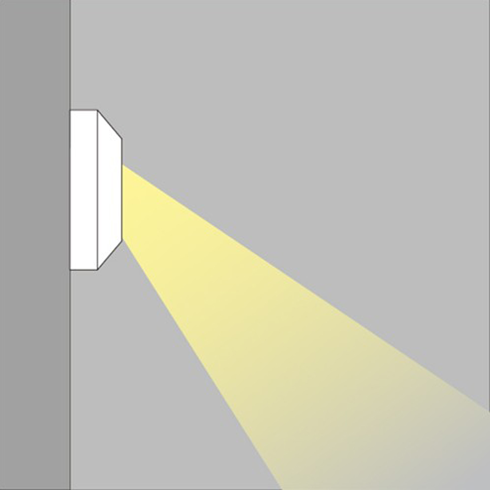 下照式的配光使LED光源具有方向性,防止向上光,提供 均質柔和的照明。可安裝於牆面、樓梯、陽台照明提供引導照明使用。