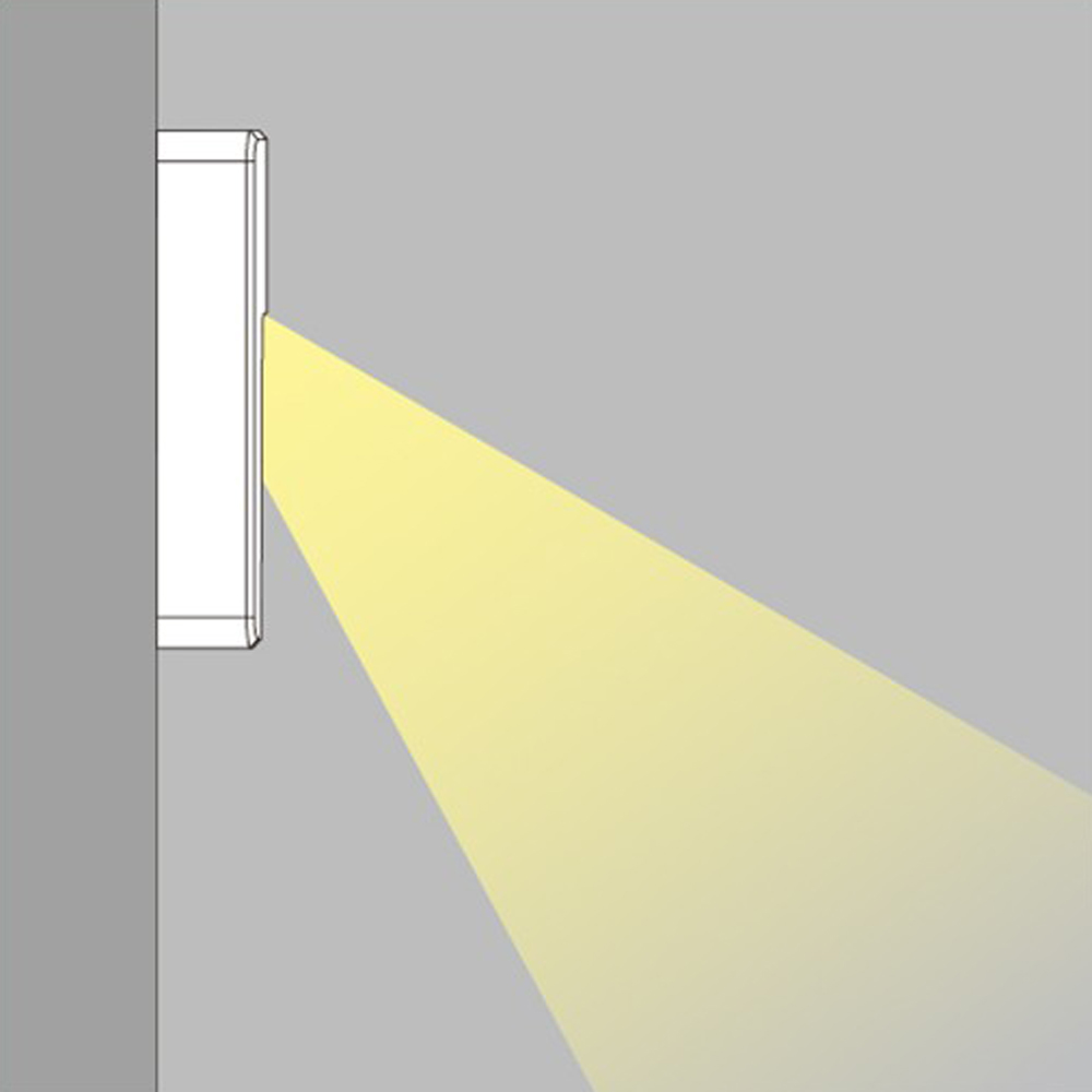 下照式的配光使LED光源具有方向性,防止向上光,提供 均質柔和的照明。可安裝於牆面、樓梯、陽台照明提供引導照明使用。